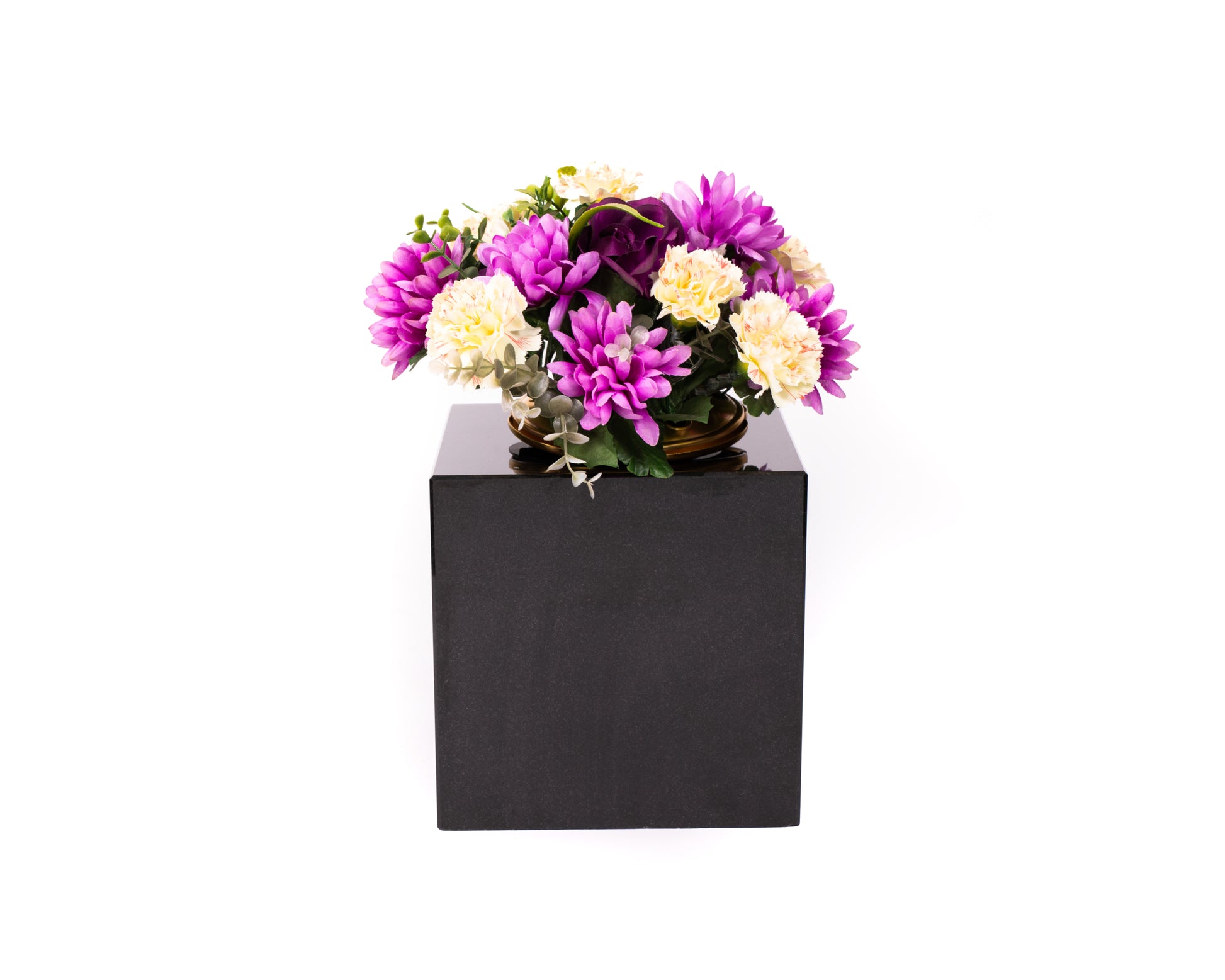 Our 6 inch black vase designed for cemeteries can also be inscribed and will the perfect memorial alternative to a traditional headstone. Fill the vase with water and trimmed flowers will stand up in the headstone vase perfectly with the aluminium flower holder.