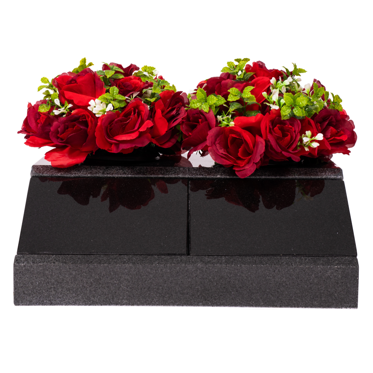 Offering space for two inscriptions on a joint stone base, the double mid grey memorial stone also has flower holes incorporated for the perfect finishing touch to your choice of memorial
